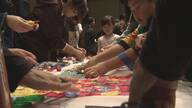 靴下の製造時に出る“はぎれ輪っか”を再利用したコースター作りや靴下を使ったぬいぐるみ作り、ユニークな靴下が当たるくじ引きなど。また、試着した着圧ソックスをそのまま履いて帰ることができる企画もあります。