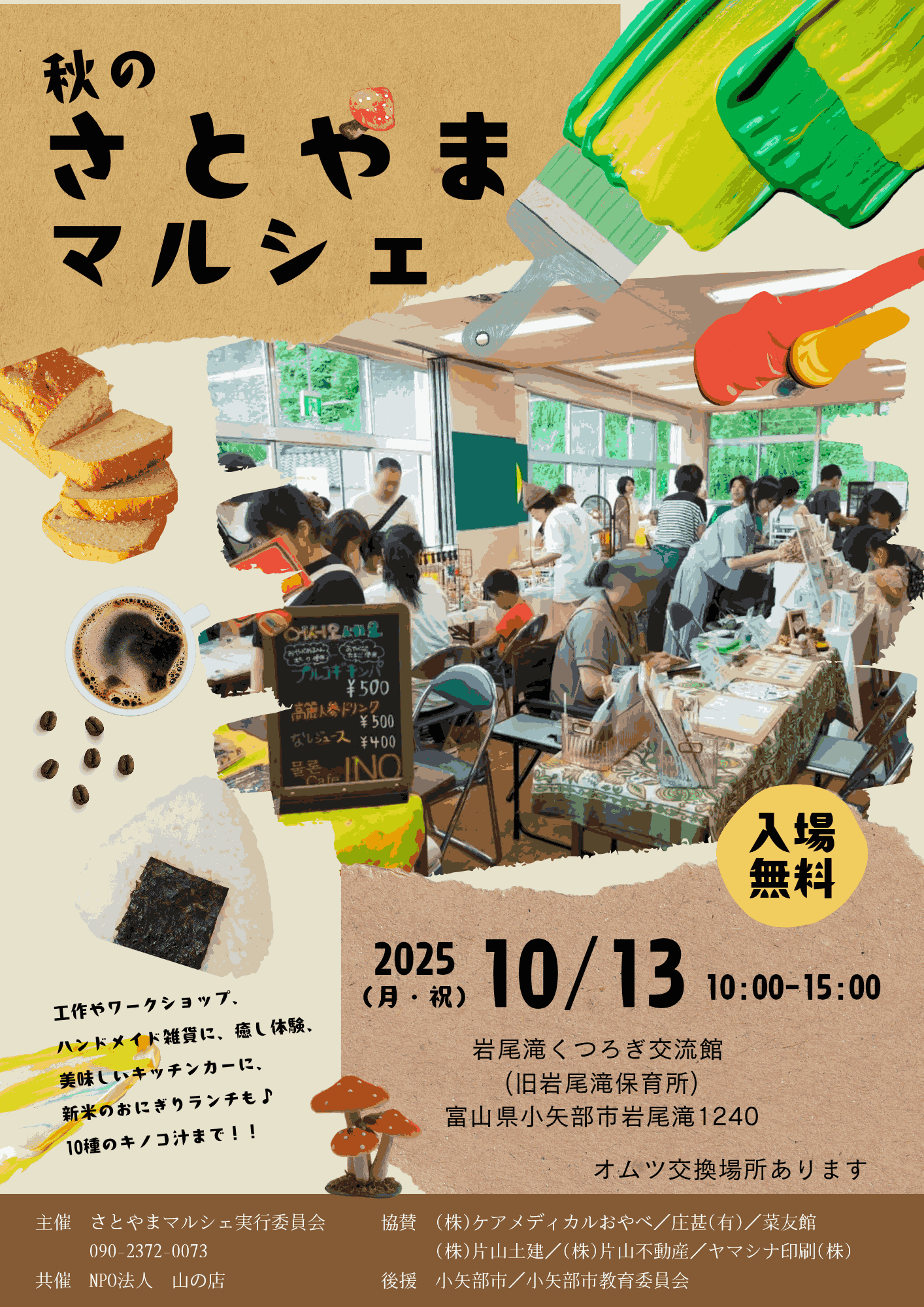 時 間:10:00~16:00場 所:旧八人町小学校グラウンド(富山市八人町5-17)駐車場:なし