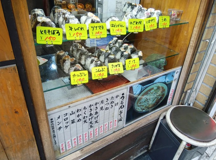 オススメのメニューは「メンチそば(税込520円)」。立ち食いそば屋の揚げ物と言えば天ぷらだけど、ここのメンチカツは肉が詰まってて、その家庭的なウマさが良い。なんならコロッケそば(税込500円)のコロッケもホクホクしたじゃがいもの食感に手作り感が溢れてるから、個人的には洋食揚げ物系トッピングに個性を感じる。