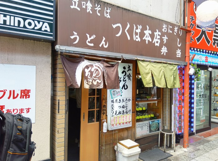 大宮駅東口を出てすぐの商店街すずらん通りの入口にある「つくば本店」。すずらん通り自体も裏路地みたいな広さゆえ、お店もこっそりと隠れるようなオーラを放っているが、大宮駅の立ち食いそば屋と言えばここであることは以前の記事でお伝えした通りだ。