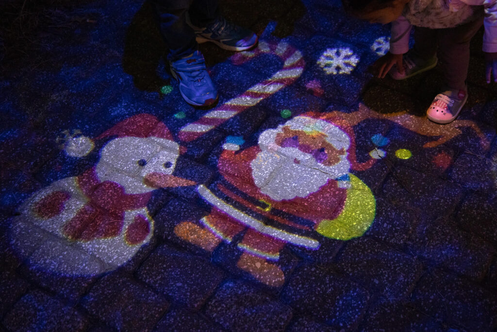 光の上を追いかけたり、踏んでみたり、ワクワク感が広がっていました。遊び心あふれる仕掛けに、冬の冷たい空気もどこかあたたかく感じられます。