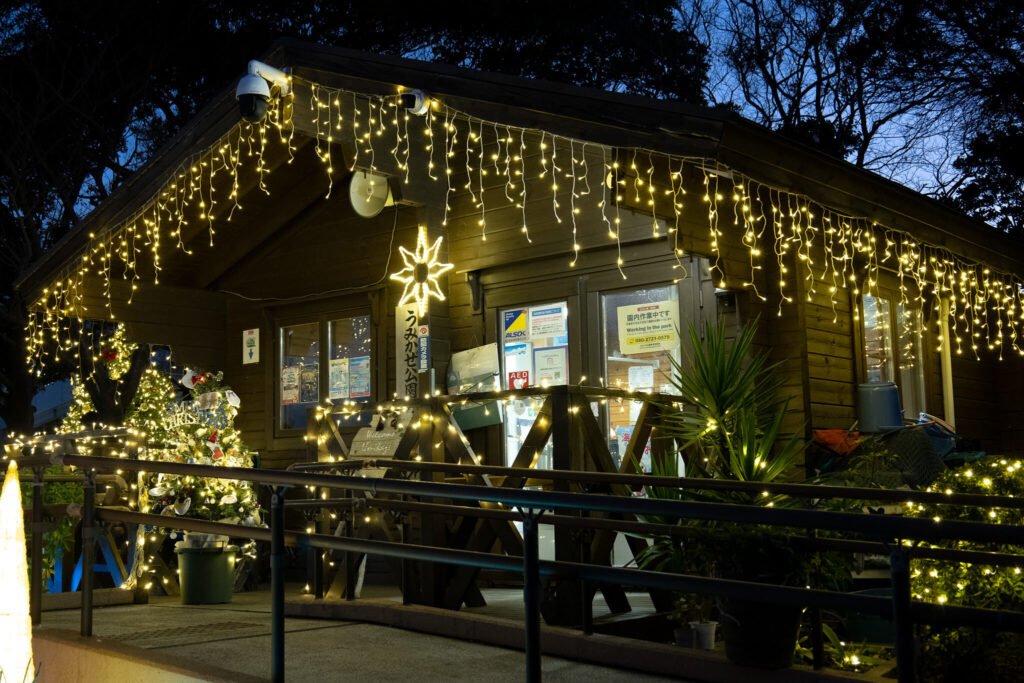 日が暮れると、園内イルミネーションが点灯され雰囲気は一気に冬らしくなりました。4ヶ所のイルミネーションエリアを順番に周るのも楽しい時間になりそうです。エリアごとに点灯期間が異なるため、訪れる前にチェックしておくのがおすすめです。
