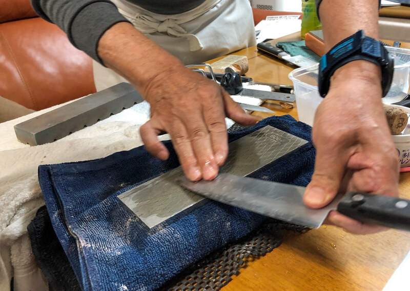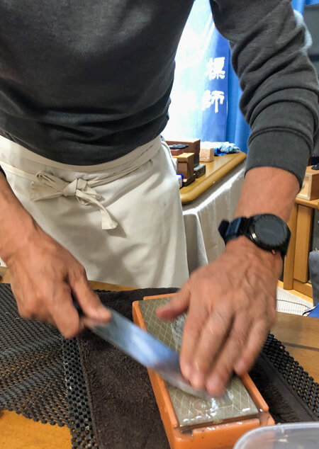魚を上手にさばくため「包丁研ぎ」を習いに