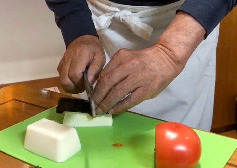 そこで、最後の「卒業検定」では、自分で研いだ包丁を使って豆腐の上に乗せた海苔が「スパッ!」と切れるかどうかのテストを受けることに。不安定な豆腐の上に置かれた柔らかい海苔を切るには、よほど切れ味のいい刃で一気に引かないと難しいのです。
