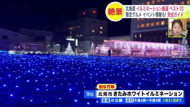 コロナ禍をきっかけに、医療従事者へエールを送りたいという思いから、北見赤十字病院前の公園を会場に、約9万個の電球が優しい光で彩られています。