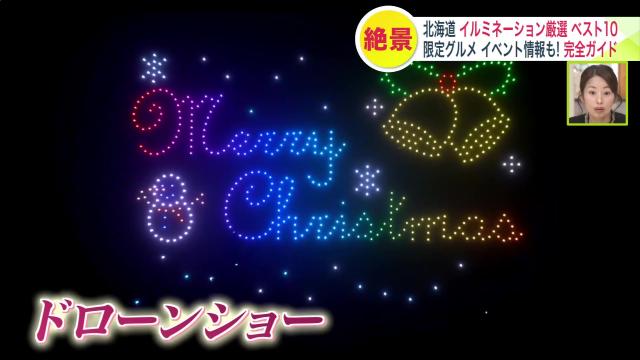 500機のドローンが光を放ち、サンタクロースやトマムのランドマークタワーホテルなど、北海道を象徴するモチーフを夜空に描く、まさに空中イルミネーションです。
