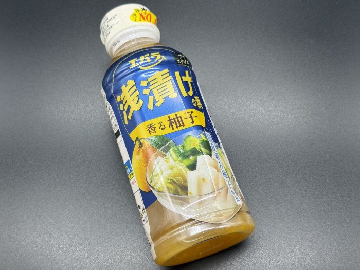 「浅漬けの素 プチスタイル 香る柚子」は、ファン投票企画で推されたという商品。すでに多くの人が使っている人気商品と呼んでいいだろう。実売価格は500mlで税込240円くらい。