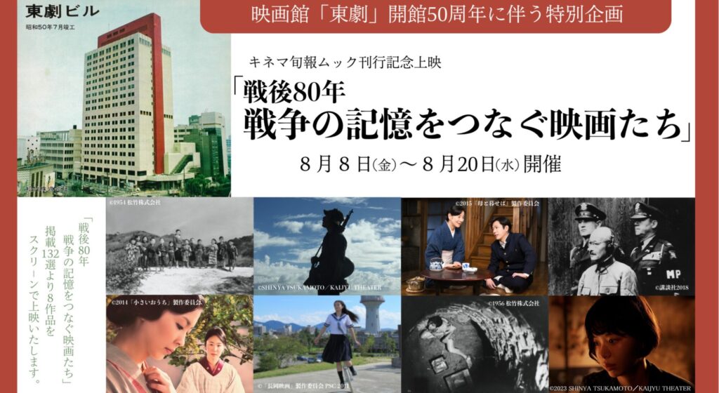 キネマ旬報社からは、キネマ旬報ムック『戦後80年 戦争の記憶をつなぐ映画たち』が7月29日発売される。本誌で紹介されている132選の作品の中から8作品が東劇で8月8日(金)~20日(水)に上映されることになった。