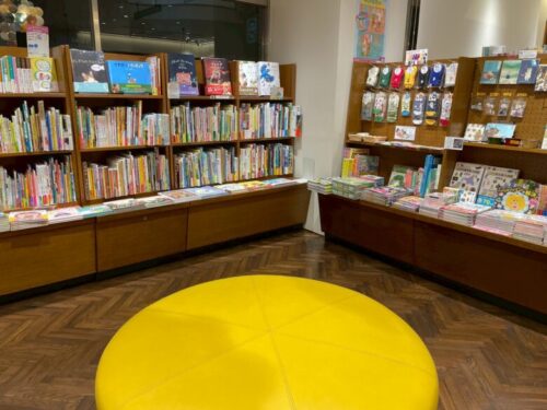 イスのある児童書や絵本のコーナーもあり、誰もいない本屋さんでのんびりとくつろげます。