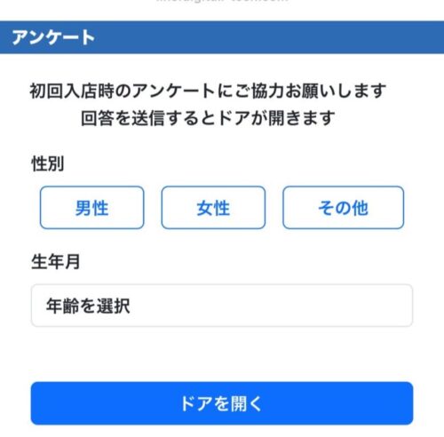 登録すると、スマホの画面にて、性別と生年月を聞かれるので、これを入力して「ドアを開く」を押します。