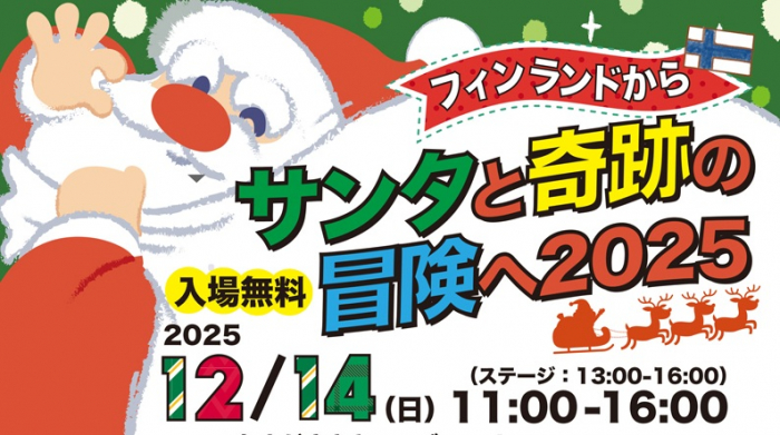 12月14日、『あまがさきキューズモール』の2F Q's parkと3F レンガのひろばでクリスマスイベント「サンタと奇跡の冒険へ2025」が開催されます。入場無料。