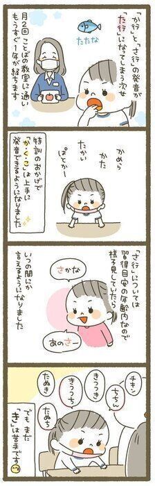 はじめは「か行」が発音できず、さかなも「たたな」になっていた次女でしたが…。特訓をし、今では「か行」も「さ行」も発音できるようになりました~!