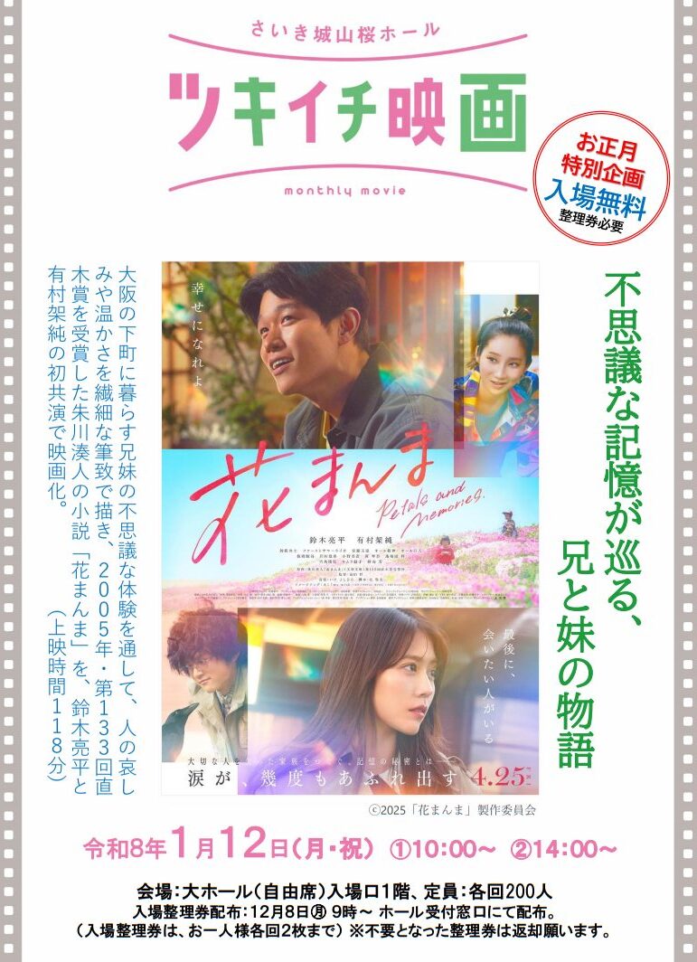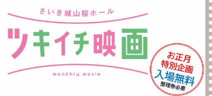 “さいき城山桜ホール” 恒例のツキイチ映画 『お正月特別企画 入場無料』開催!今日から入場整理券 配布開始です