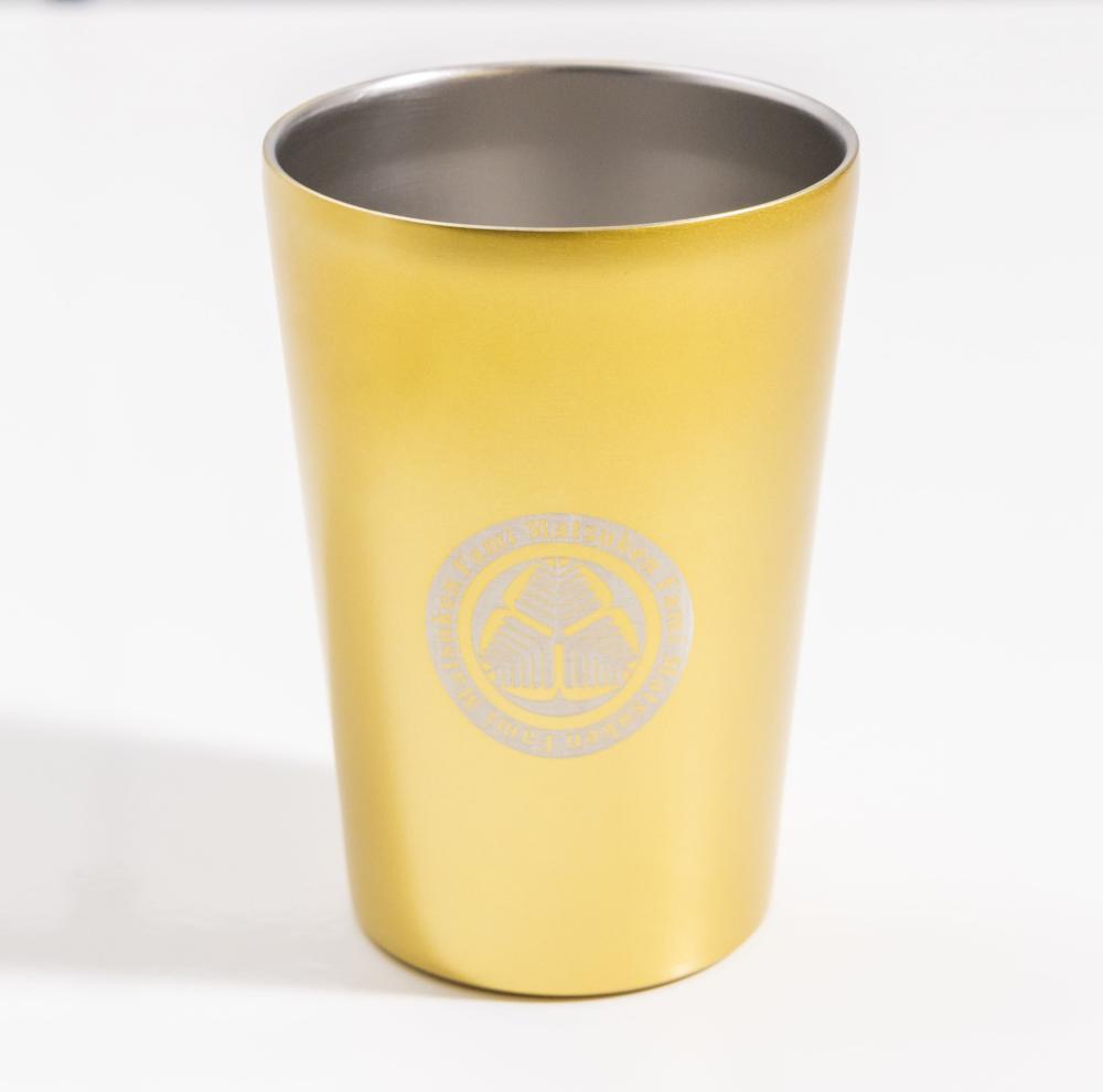 ゴールドカラーにマツケンの名前と芸紋を冠した特別仕様。保温・保冷性に優れ、飲み物の温度を長時間キープします。