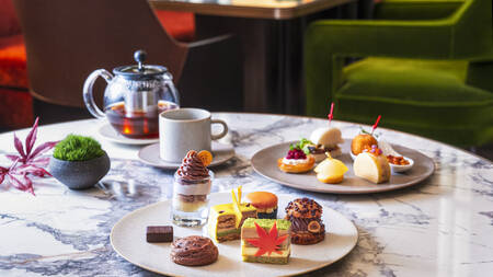 アイスは(バニラ・抹茶・キャラメル・栗)など何種類もありました。コーヒーや紅茶などドリンクメニューも充実しています。[パフォーマンスデザートプレート]は、カフェグルマン(モンブランとサツマイモのキャラメリゼ)、何度でも食べられる一皿でした♡