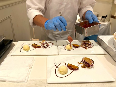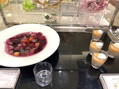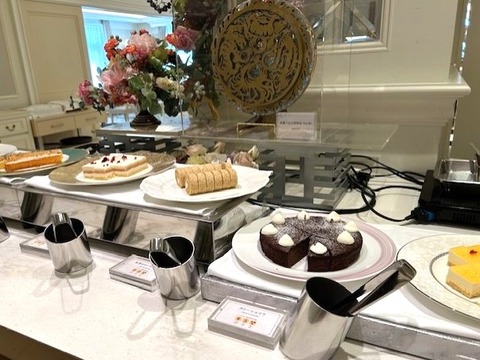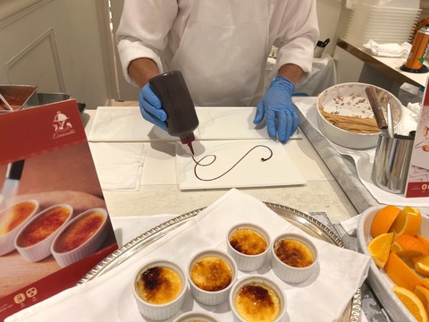 いろいろなお料理を何回か取りに行き、お喋りも弾んでいたら、残り時間が少なくなっている!デザートもいただかなければ!パティシエにデザートプレートもお願いしました。ライブ感が嬉しい演出です♡