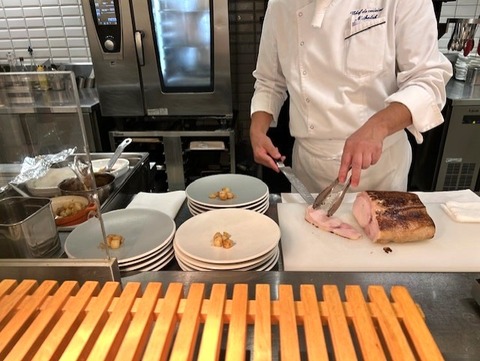 柔らかそうなローストポークは、シェフに切り分けてもらいます。