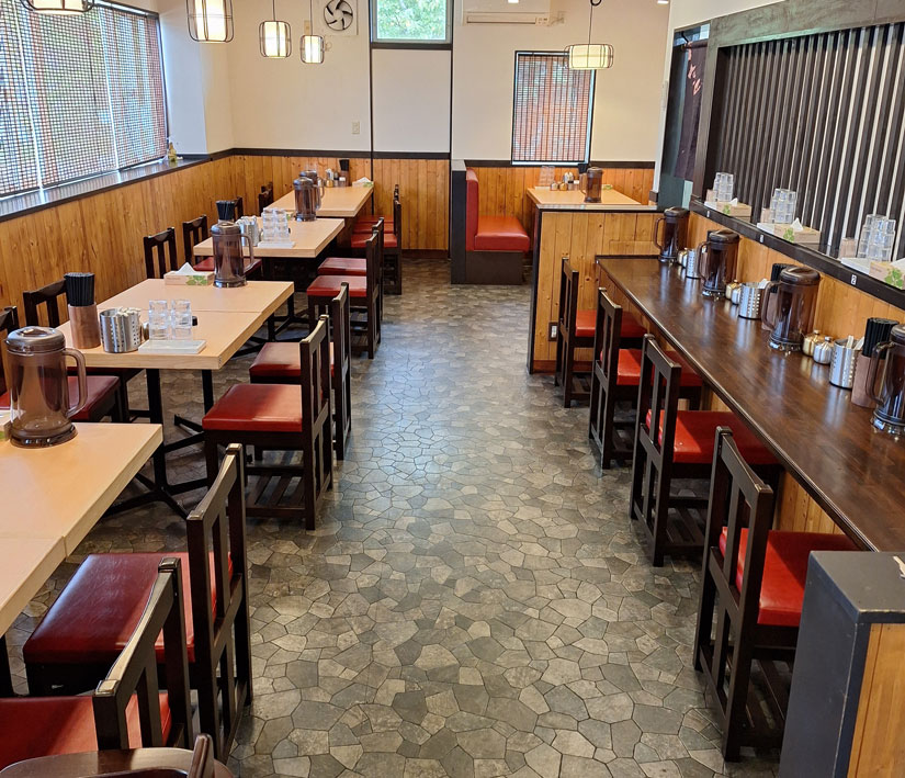 約8時間煮込み仕込んだ背脂豚骨スープをベースにした醤油らーめん、味噌らーめんをはじめ、油そばやつけ麺まで幅広いメニューを提供。
