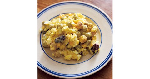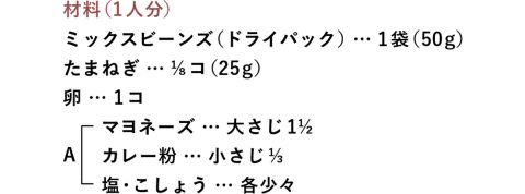 1人分では手間のかかるポテトサラダの味わいを、手軽な豆を使い、カレー風味にアレンジして楽しみます。