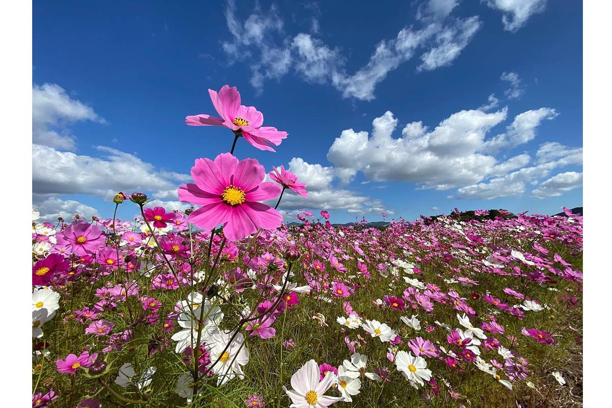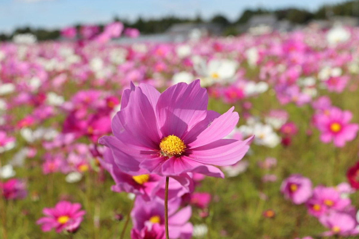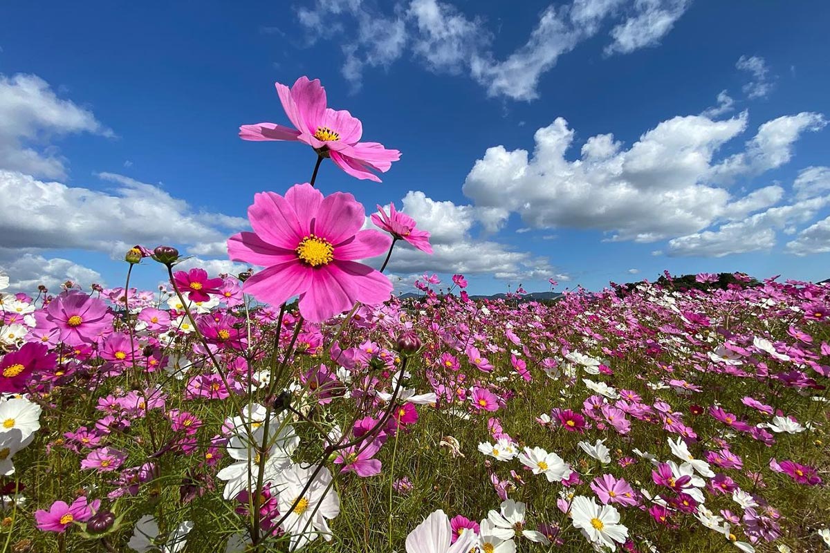 秋の花といえばコスモスを連想する人も多いのではないでしょうか? 10月頃になると見頃を迎えるコスモスは、赤やピンク、白の鮮やかな花が風に揺れる様子が素敵ですよね。広大なコスモス畑なら吹き抜ける爽やかな風と共に秋を体感できるはずです。