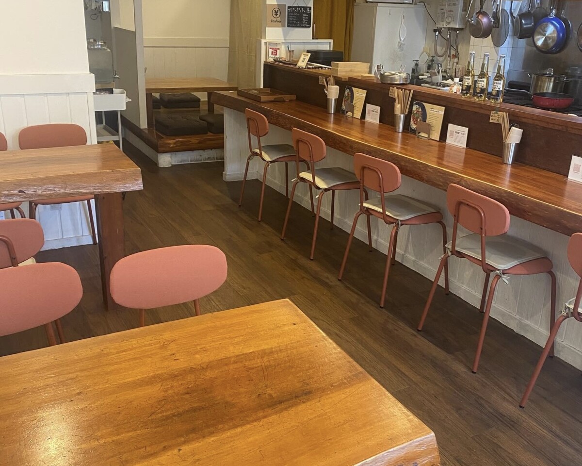 木目調を基調としており、暖色系の椅子の色味と相まって、店内はとても温かみのある雰囲気です。