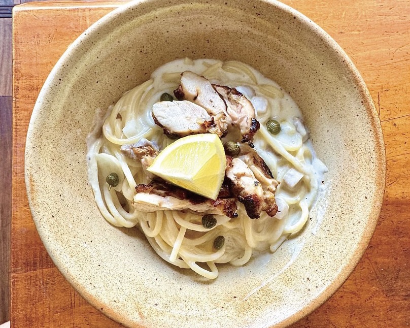 ジャマイカのソウルフード「ジャークチキン」に、レモンの酸味が心地良く調和したスパゲッティです。