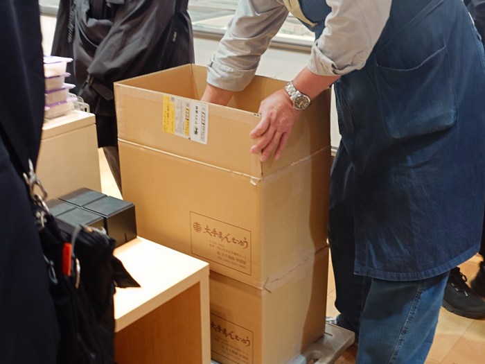 じゃあ買うか……と向かうと、さっきまで店内のその辺をうろうろしていた客たちが、ワッと「大手まんぢゅう」に殺到するではないか!