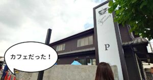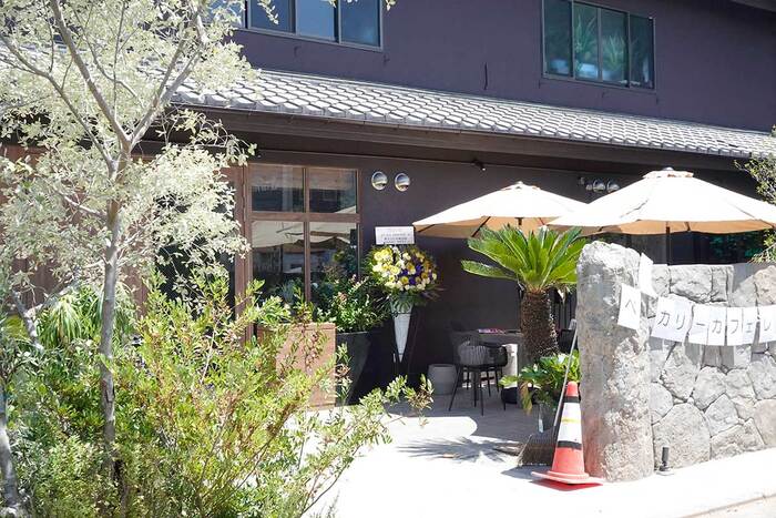 ベーカリーカフェレストランと書かれていて(最初の伸ばし棒が風でペロンとなってます)、