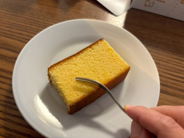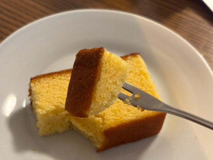 気になる味だが、カステラは卵の香りがふわっと広がり、底の茶色い部分の香ばしさが最高。しっとり感と甘さも絶妙で、「やっぱり老舗だな……」と唸る納得のクオリティ。
