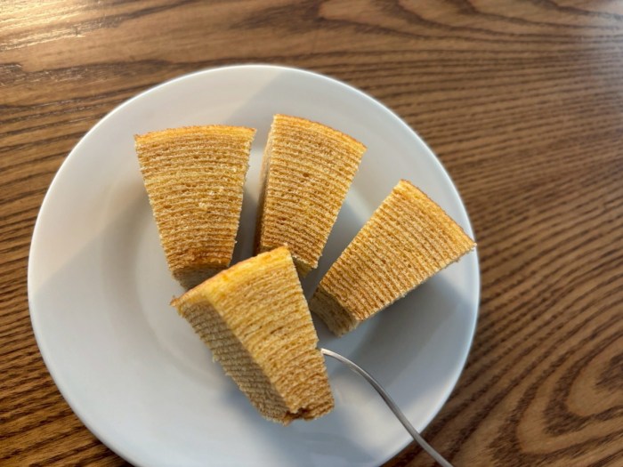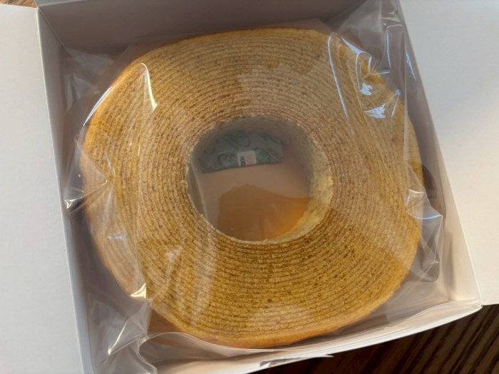 一方、バウムクーヘンは、どこか懐かしい味わいだ。「カステラ屋がつくるバウムクーヘン」だけど、カステラ感はなく(当たり前か)普通においしいバウムクーヘンといった感じ。