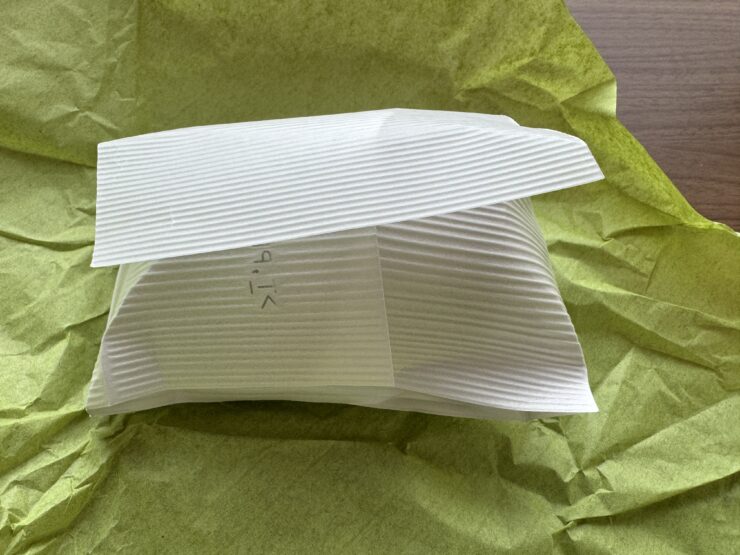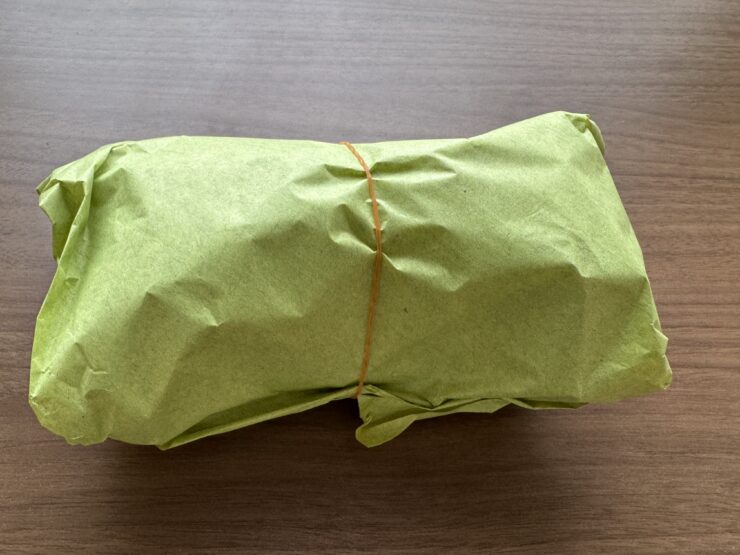 少し懐かしさを感じるデザインの袋の中には、包まれたおにぎりが入っている。