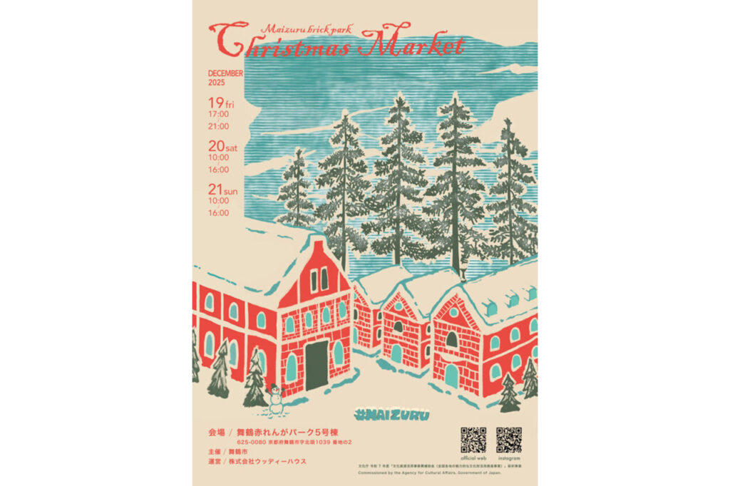 2025年12月19日(金)〜21日(日)の期間、[舞鶴赤れんがパーク](京都府舞鶴市)で『舞鶴赤れんがパーククリスマスマーケット』が初開催される。国の重要文化財でもある赤れんがパークがこの時期だけの特別な姿に変身。飲食・カフェ・ショップが20店舗ほど登場するほか、明治・大正の海軍の食文化が楽しめる舞鶴ならではの企画も実施される。ここでしか体験できない没入型クリスマスマーケットを満喫して。