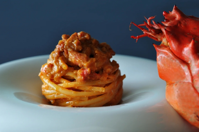 『蟹のリングイネ』は、冬の海が育んだ蟹の風味が凝縮された温製パスタです。ソースは、イタリア・リグーリア州の郷土料理の調理法を活かし、蟹の身だけでなく、殻までじっくり煮込むことで、濃厚な旨みと香ばしさが最大限に引き出されています。身をふんだんに含んだ濃厚なソースがリングイネと絡み、蟹の旨みを余すことなく堪能できます。