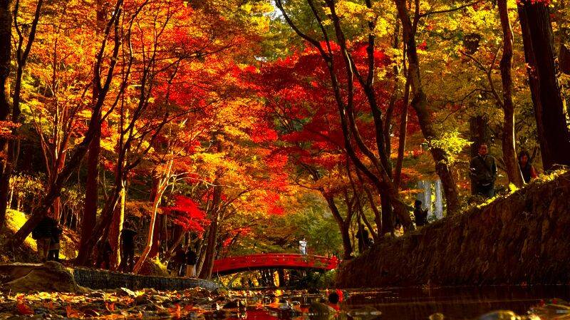 また、紅葉谷公園でも11月30日(日)までライトアップが実施されており、日没後から20時まで園内の紅葉を照らし出しています。