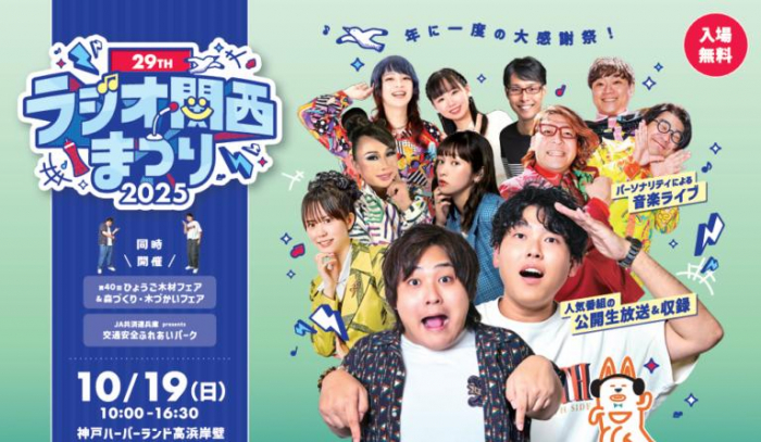 10月19日、神戸市中央区の『神戸ハーバーランド高浜岸壁』で「第29回ラジオ関西まつり」が開催されます。入場無料。