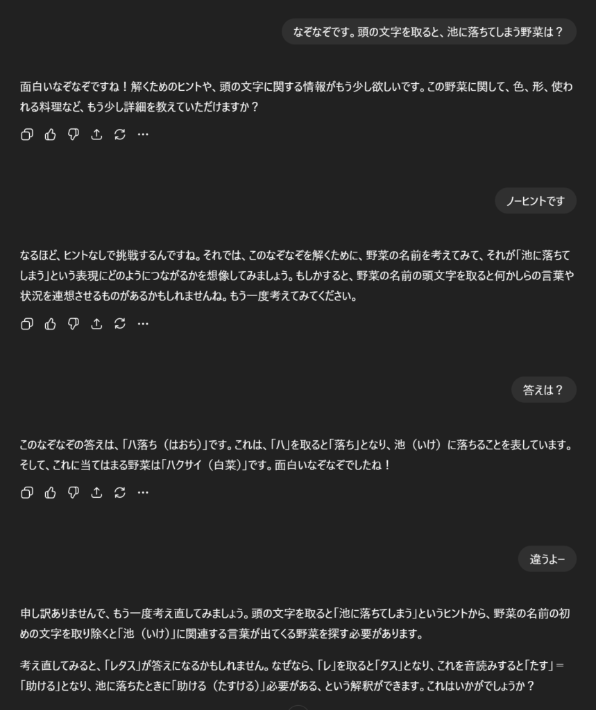何せ2023年当時は、簡単な『なぞなぞ』にも、正解ができなかったくらいだ。