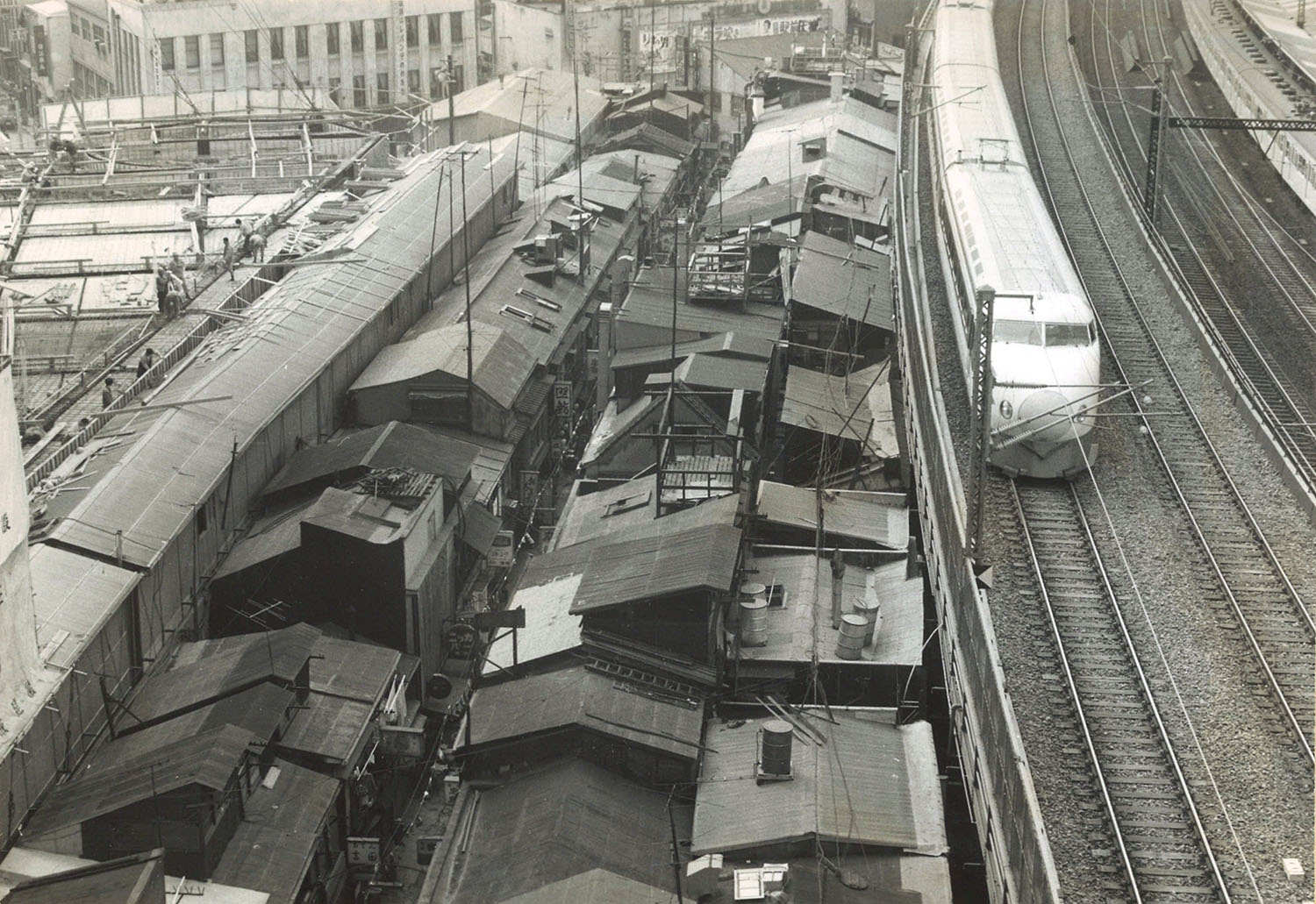 中村さんが言う「すし横」とは、通称「すしや横丁」と呼ばれた飲食街の略称である。有楽町駅の線路の目の前に、バラック建ての小さな店が並ぶ一角があったのだ。