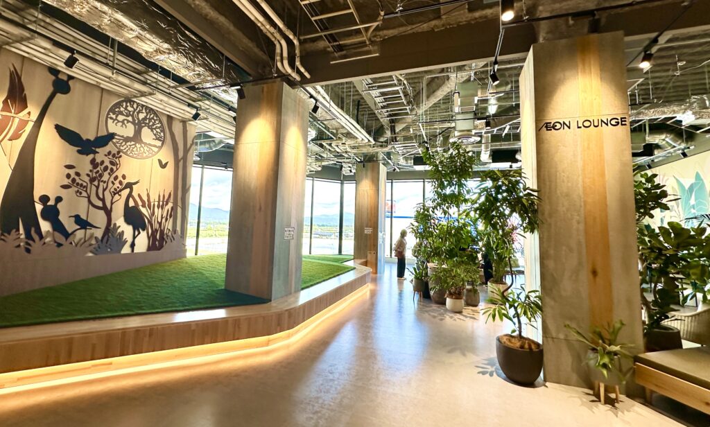 3階のストアは見晴らしのいい「イオンラウンジ」に隣接しており、奥行きのある空間となっています。窓から北信五岳をのぞむ絶景ポイントで、のびのび過ごすのもいいですね。子どもから大人まで、ゆったりと笑顔があふれる店舗になりそうです!