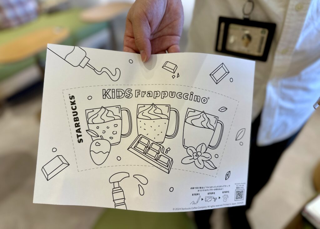また無料の「ぬりえ」とクレヨンも用意されており、ぬりえを「マイスターバックスタンブラー(355ml, 税込1800円)」に差し込んで、世界で一つのタンブラーを作るこのも可能だそう。子どもが飽きずに楽しめる工夫がされています。