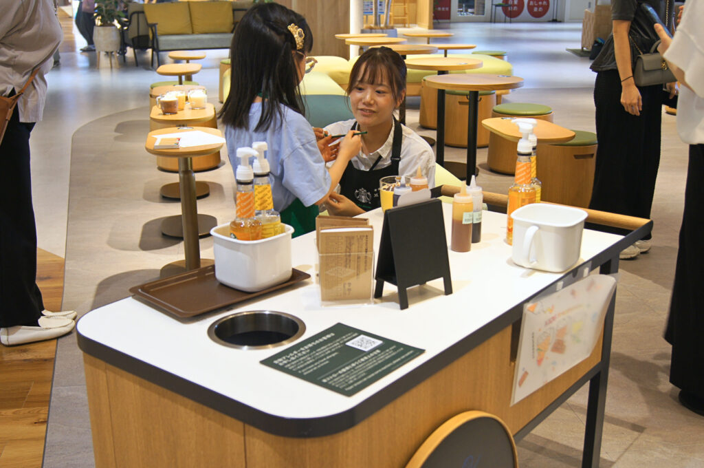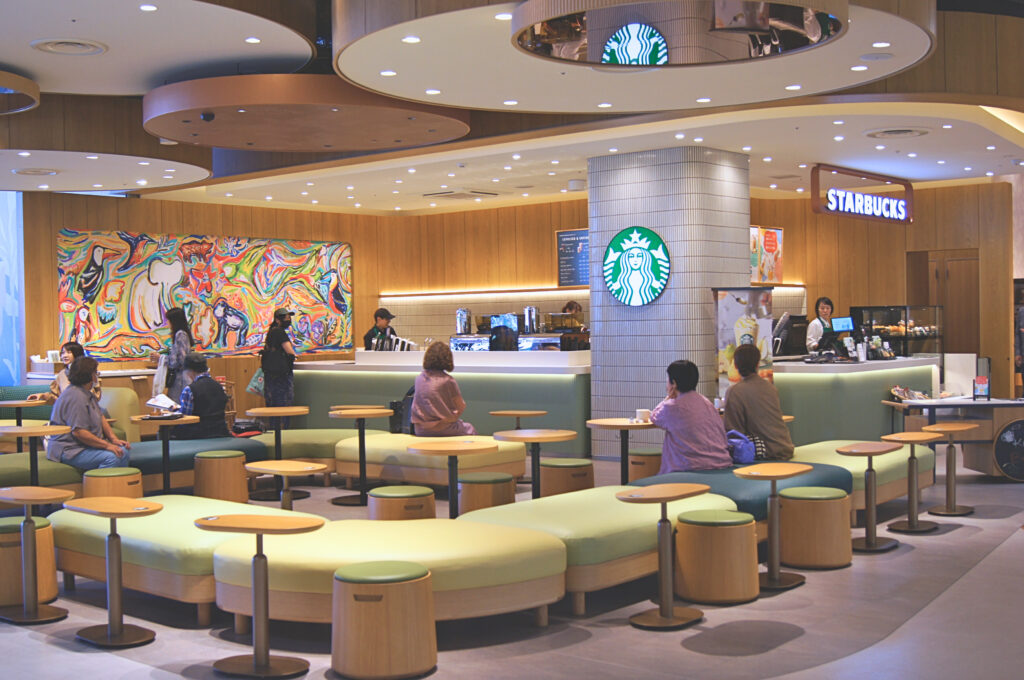 「スターバックスといえば、席が混んでいて、ビジネスや勉強で利用するお客様が多いイメージがあるかと思います。一方で “騒いでしまう子どもとは一緒に行きづらい”とのお声があり、お子さま連れでも気兼ねなく楽しめる店舗を作ろうというコンセプトで始まったのが『ファミリーフレンドリーストア』です。通路がゆったり作られており、ベビーカーやショッピングカードに乗ったままでお席の利用ができますし、ソファは撥水加工されていたり、テーブルや棚は全て角が丸くなっているなど、お子さま連れのファミリーが過ごしやすい空間になっています。」