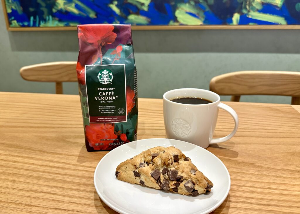 須坂の店舗をイメージし、ストアマネージャーの山崎美奈子さんが選ぶおすすめのペアリングは「カフェ ベロナ」と「チョコレートチャンクスコーン」です。