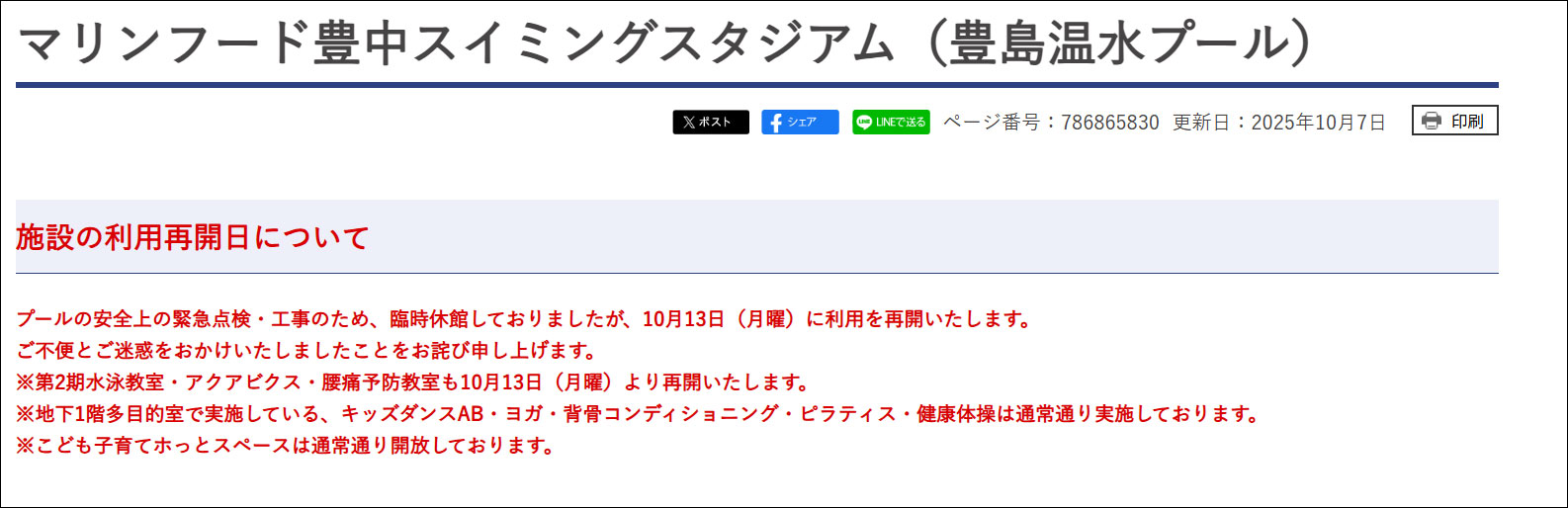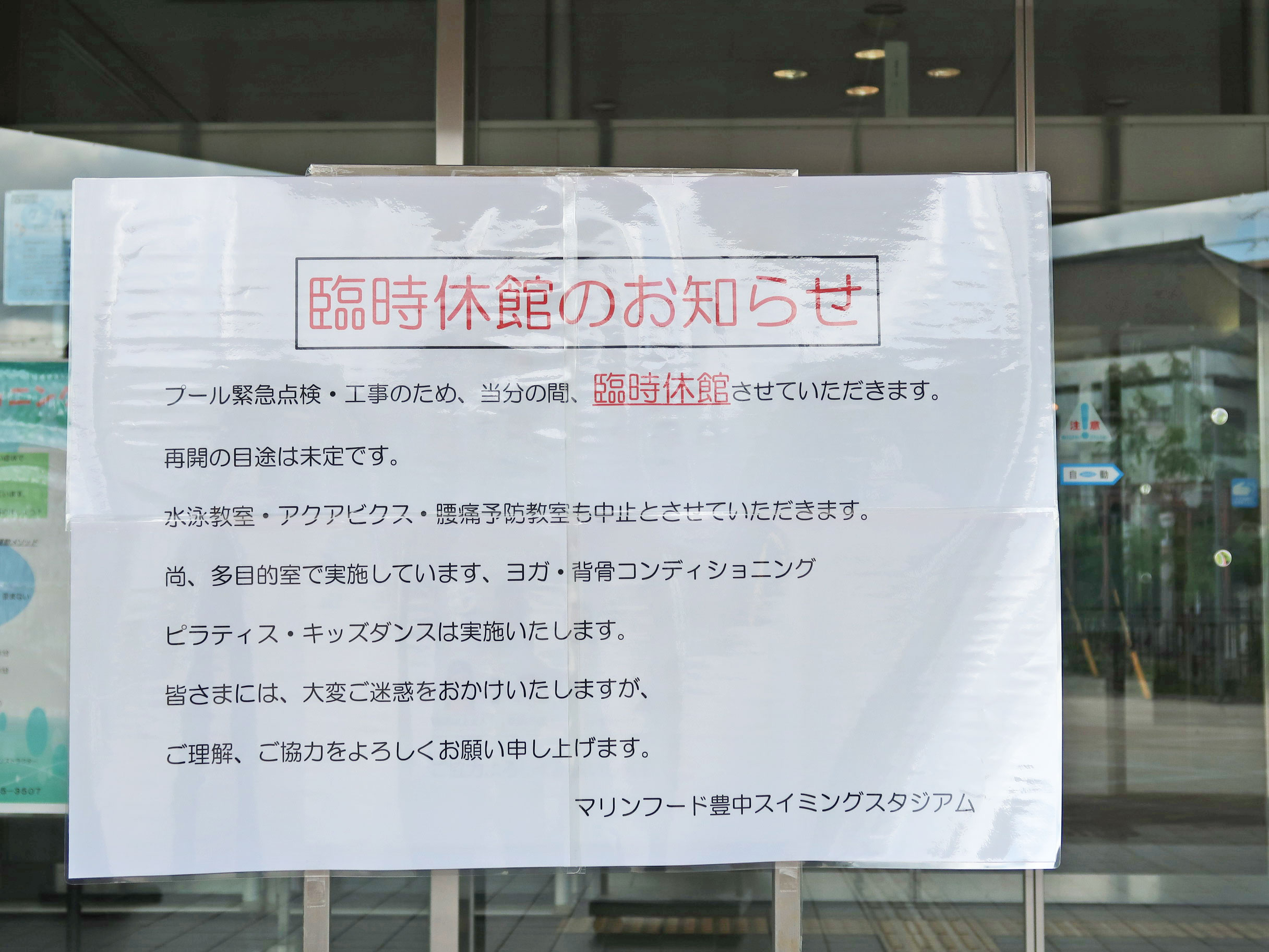 休館していた服部西町にある「マリンフード豊中スイミングスタジアム」の再開日が決定したようです。