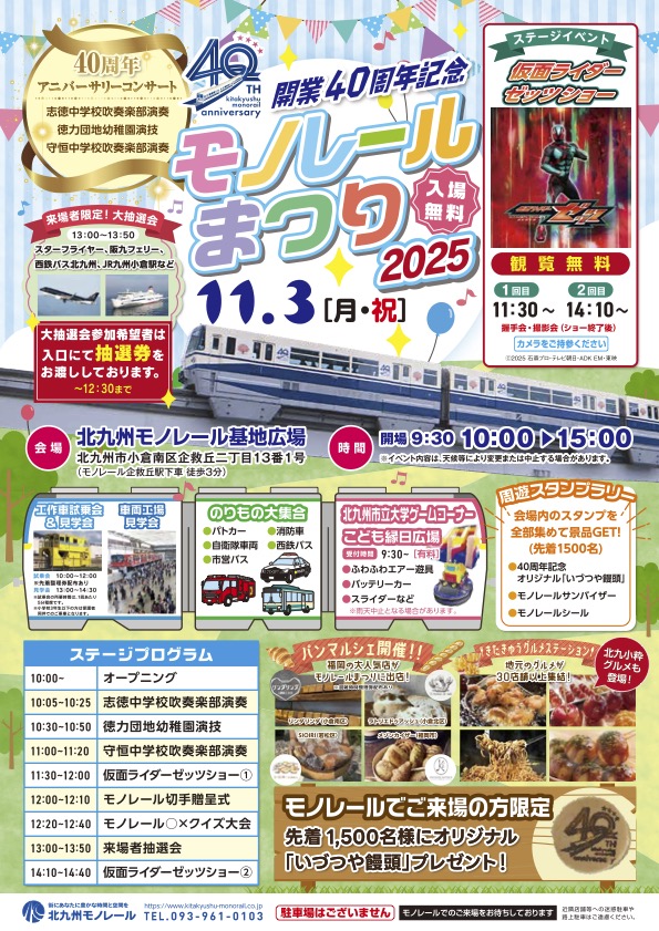 開業40周年記念「モノレールまつり2025」開催 地元グルメ30店&パンマルシェ【北九州市小倉南区】