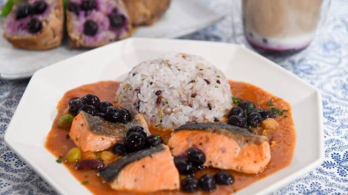 3. (2)に「白菜ヨーグルト漬け」をのせ、混ぜながらいただきます。