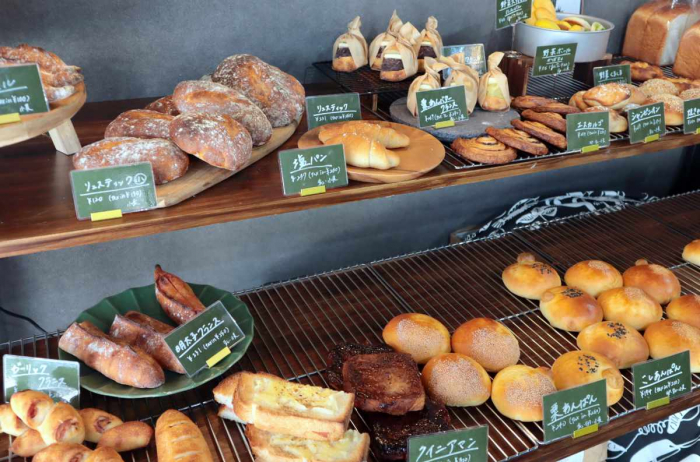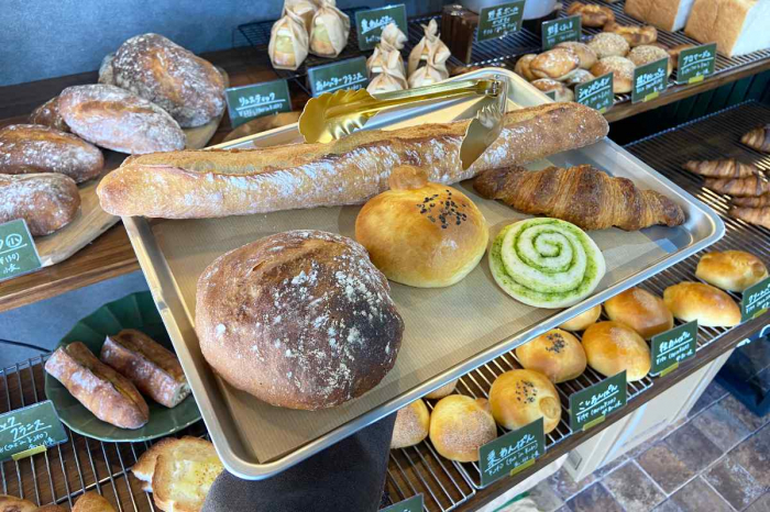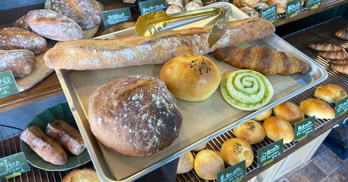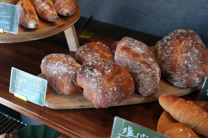 「自分が買いたいと思うパンを、買いたいと思う値段で販売することを意識しています」と話すパンのラインナップは、およそ30種類と豊富。全粒粉や石臼でひいたものなどおよそ6種類の小麦を使い分け、小麦の味とバターの香りを最大限生かした製法にこだわっています。