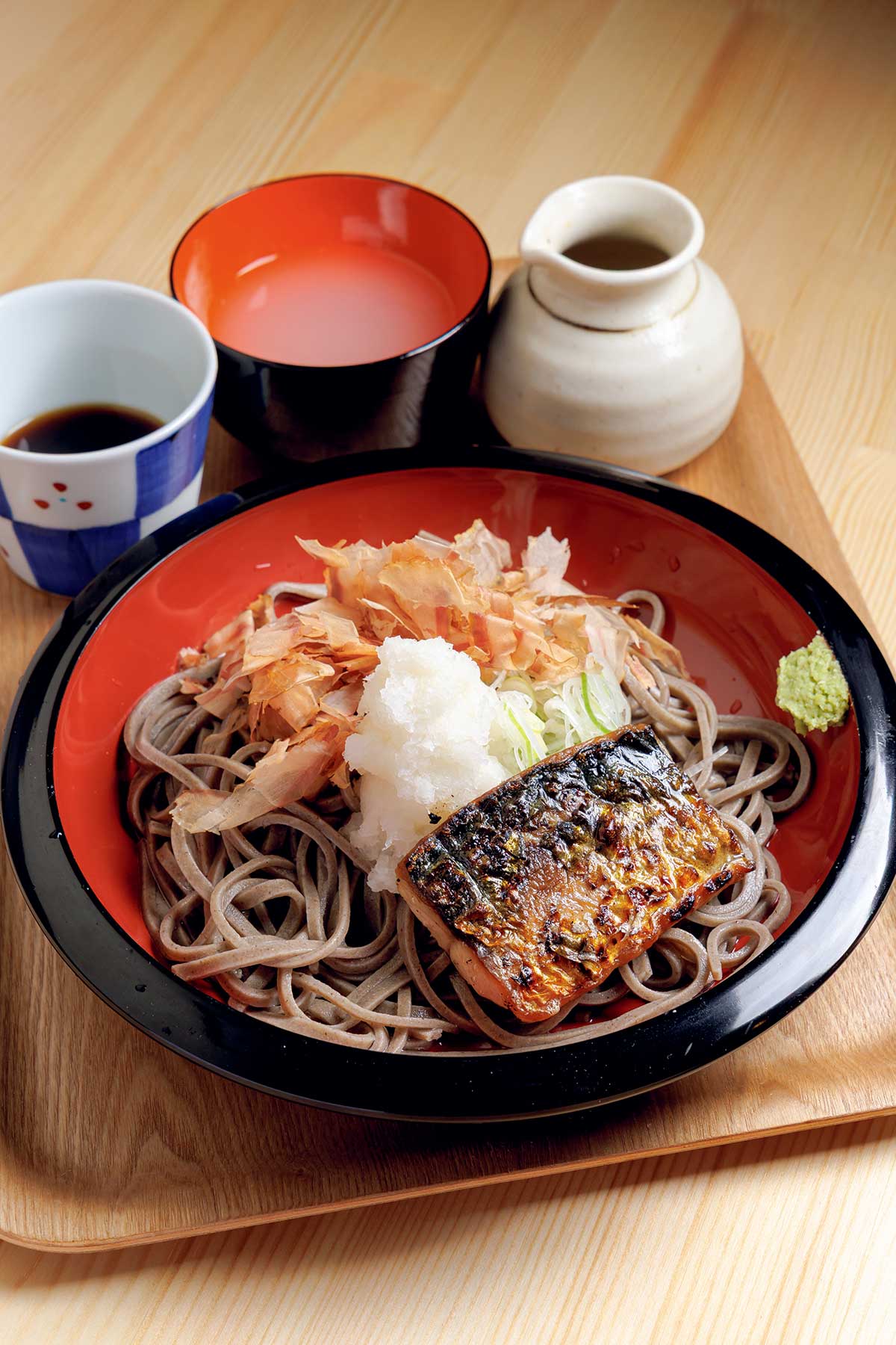 大根おろしの汁をつゆに加え、サバを崩してそばと混ぜていただくのがおすすめ。