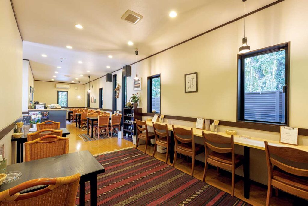 窓越しに竹林を望む店内には、ゆったりとした時間が流れています。