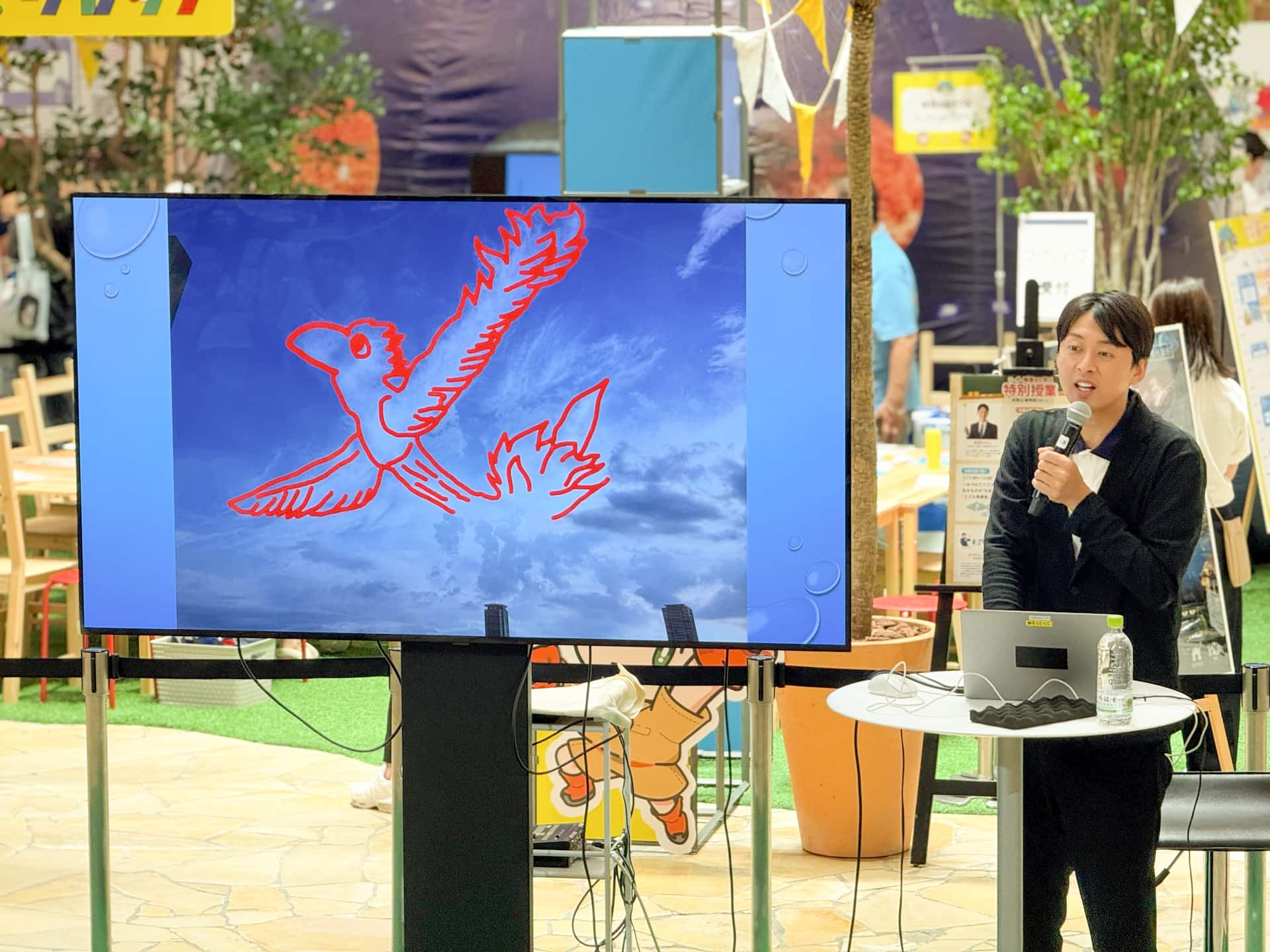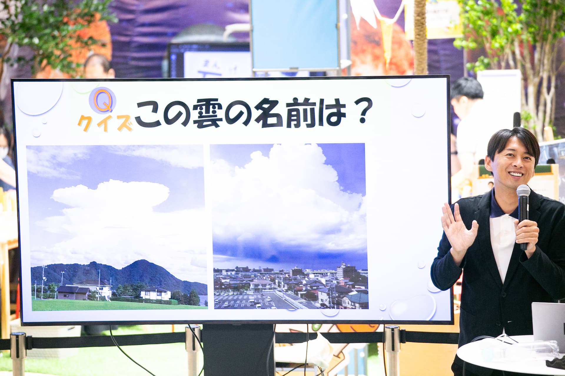 8月1日(金)には、読売テレビ『情報ライブ ミヤネ屋』や『かんさい情報ネットten.』などでおなじみの気象予報士・蓬莱大介さんが登場。空や雲のふしぎについて、子どもたちにもわかりやすく、楽しくレクチャーしてくれました。