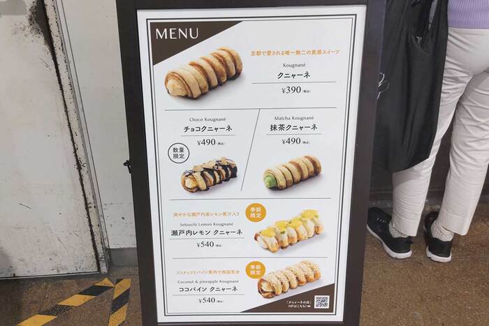通常メニューの「クニャーネ」390円「チョコクニャーネ」490円「抹茶クニャーネ」490円の3種です。