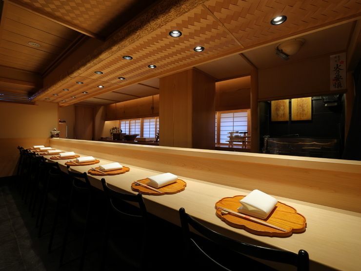 明治時代の総檜造りの建物をリニューアルしたという店内は、洗練された大人の隠れ家のような雰囲気。カウンター席で大切な人と肩を並べて、調理風景を間近で眺めながら料理に舌鼓を打つ、至福のひとときを過ごせます。希少な地酒や焼酎、ワインの品ぞろえも豊富。料理とのマリアージュを楽しんで。